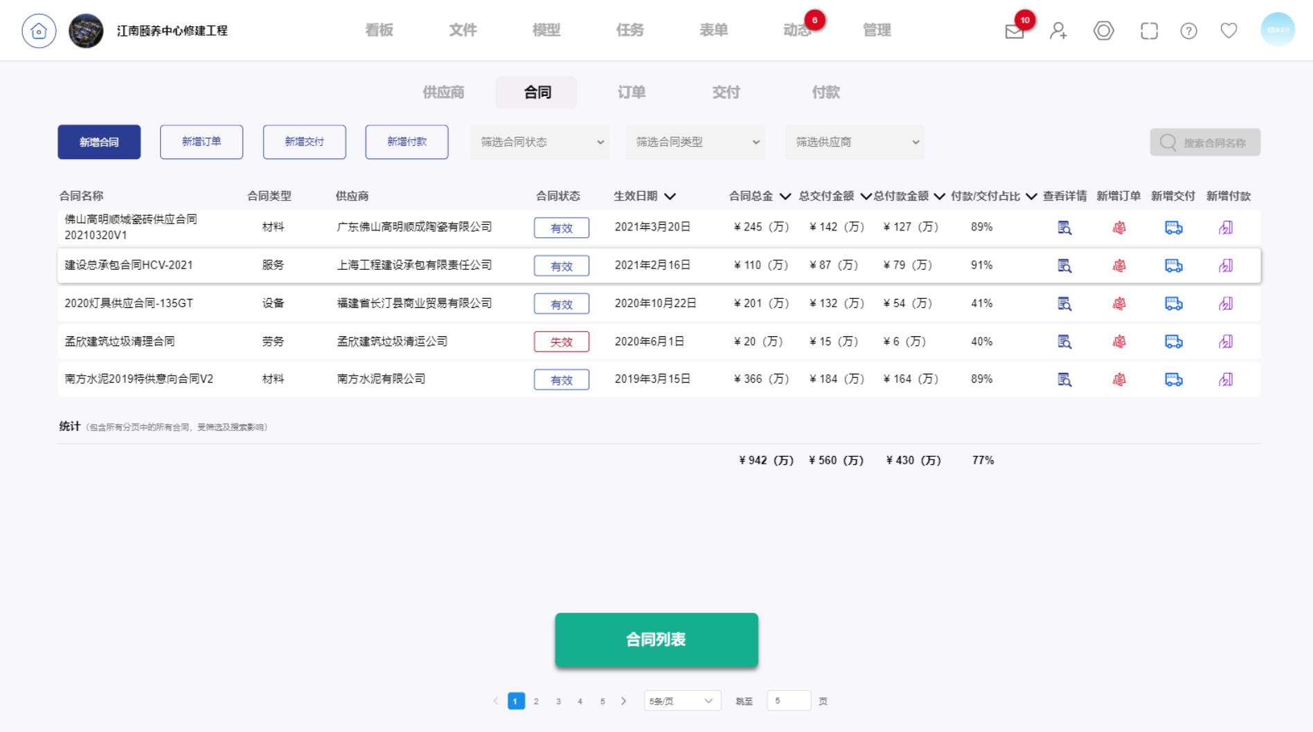 合同总额/付款累计统计