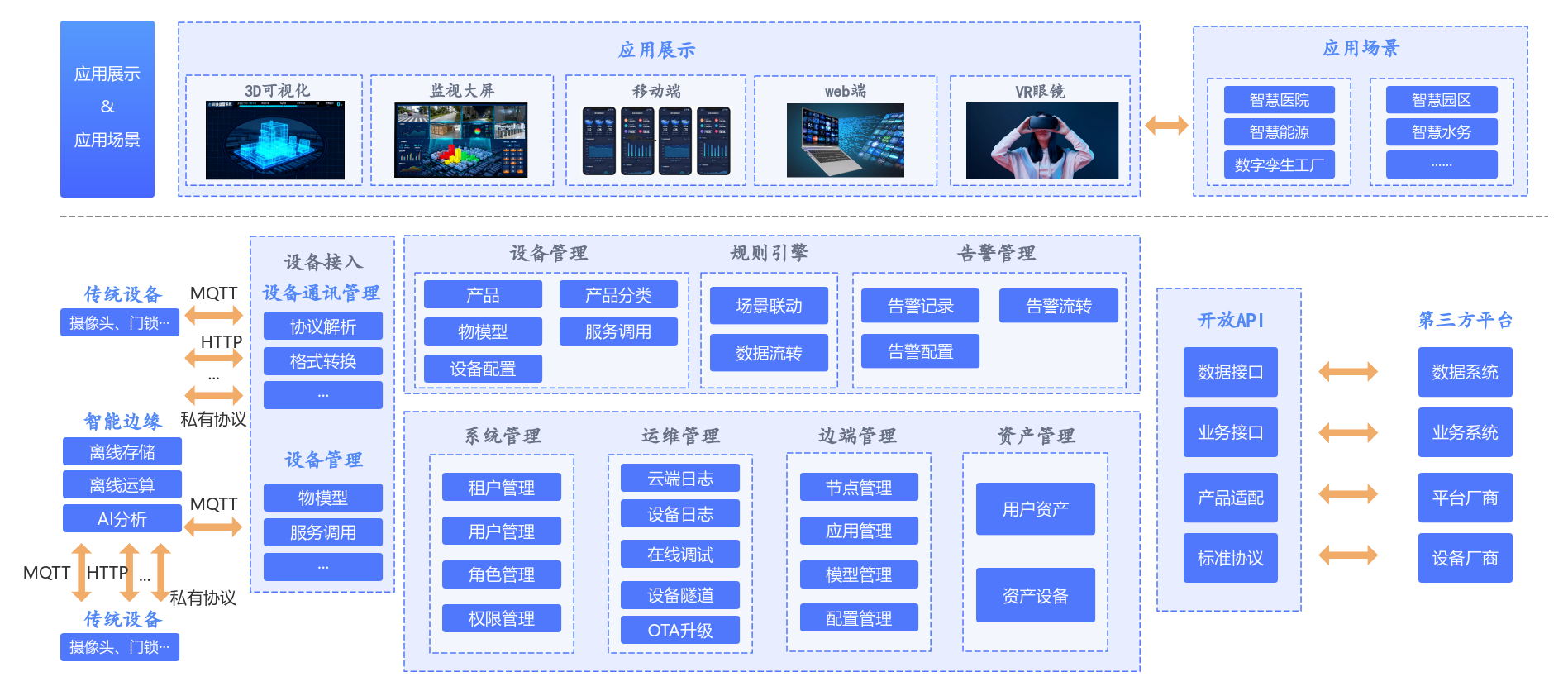 智慧医院、智慧校园、智慧园区、智慧水务、智慧工地、智慧能源、智慧农业、综合安防、数字孪生工厂、无人机巡检等端到端、可落地的数字孪生应用方案