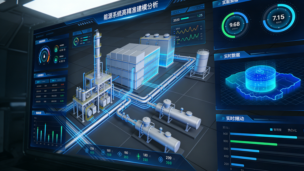 对能源产输配用全设施 1:1 数字化建模,融合 BIM+GIS 还原空间布局与拓扑关系。