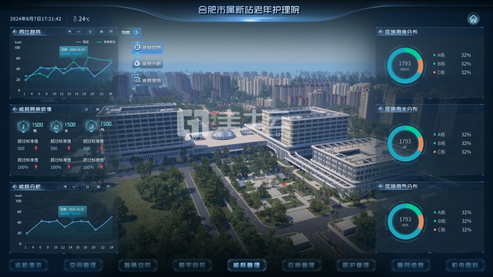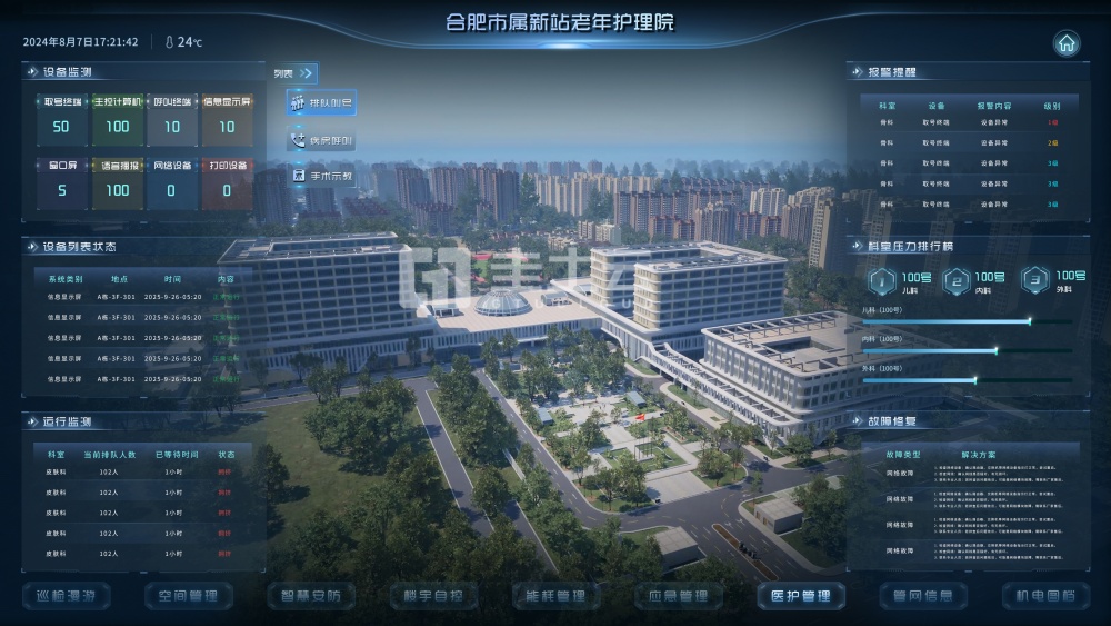 三维展示 / 院长看板/ 运营数据/ 事件汇总/ 交通状态 / 能耗监测 / 接警数据 / 巡检数据 / 设备状态 / 模块化定制